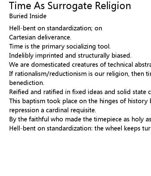 If rationalism/reductionism is our religion, then time keeping is our benediction. |