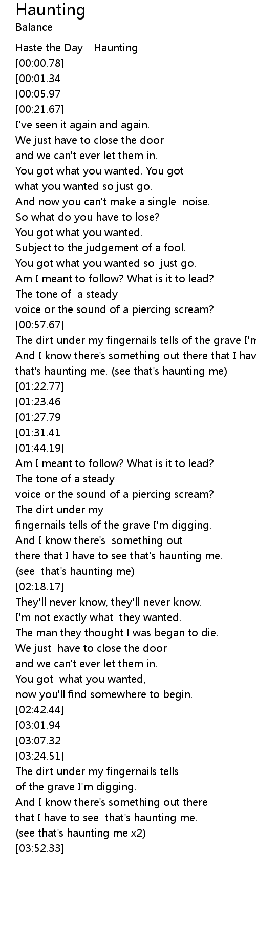 | [01:13.44] | that's haunting me. (see that's haunting me) |