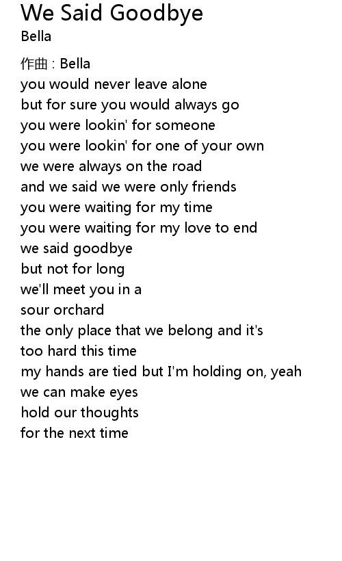 | 歌曲 | We Said Goodbye |