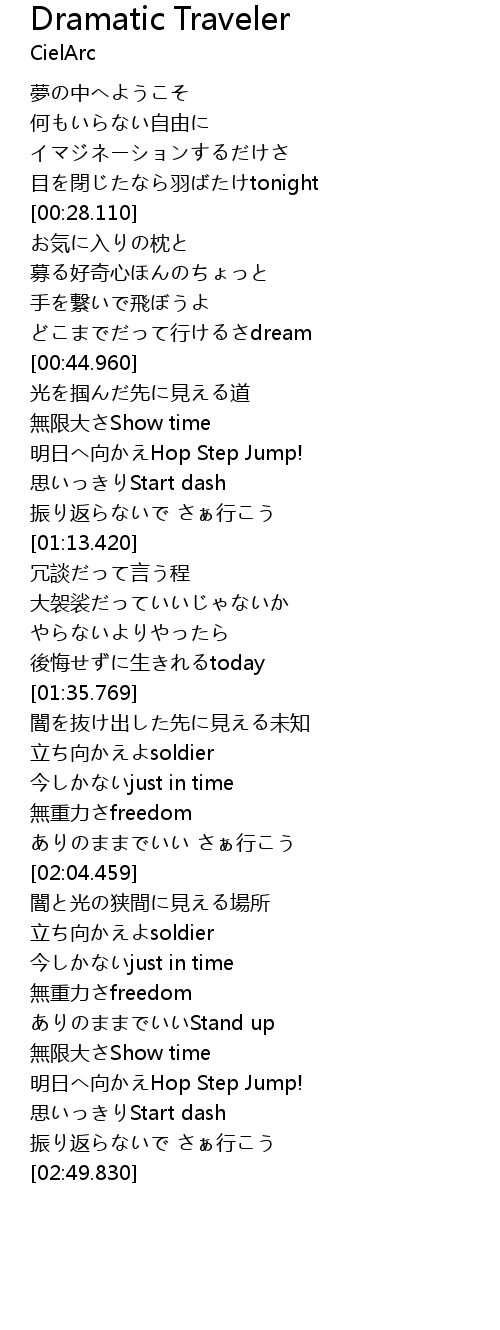 | [00:38.720] | どこまでだって行けるさdream |