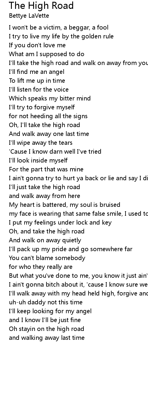 Oh, and take the high road |