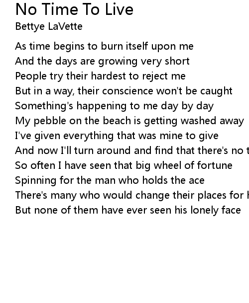 And now I'll turn around and find that there's no time to live |