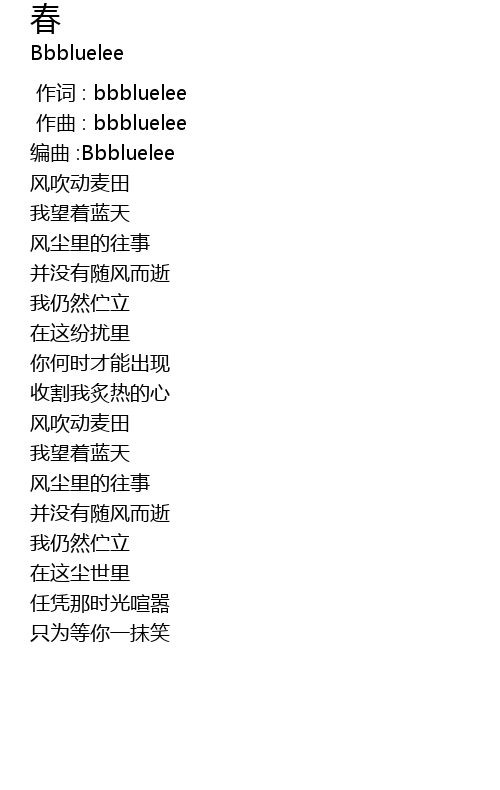 | [00:00.000] | zuo ci : bbbluelee |