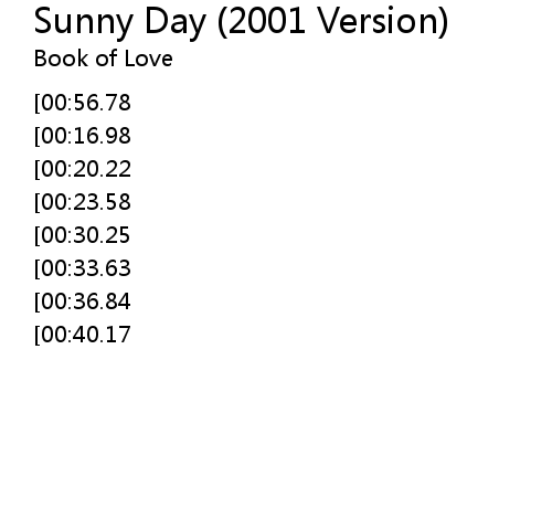 | [00:00.00][00:56.78][00:13.71] | sunny day oh sunny day |