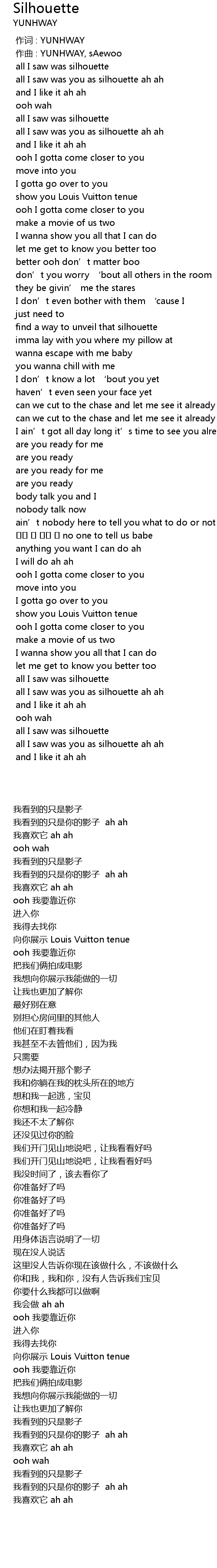 | [00:00.000] | 作词 : YUNHWAY |