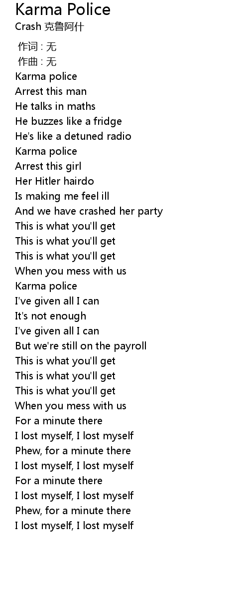 | [01:48.907] | Karma police |