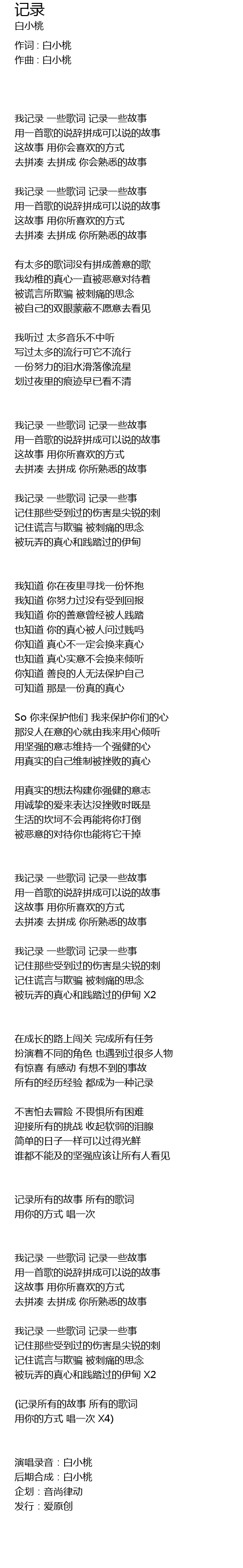 | jì lù suǒ yǒu de gù shì suǒ yǒu de gē cí | |