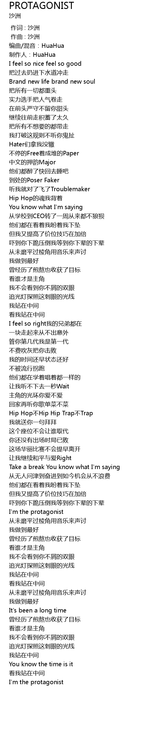 | [01:16.409] | I feel so right wǒ de xiōng dì dōu zài |