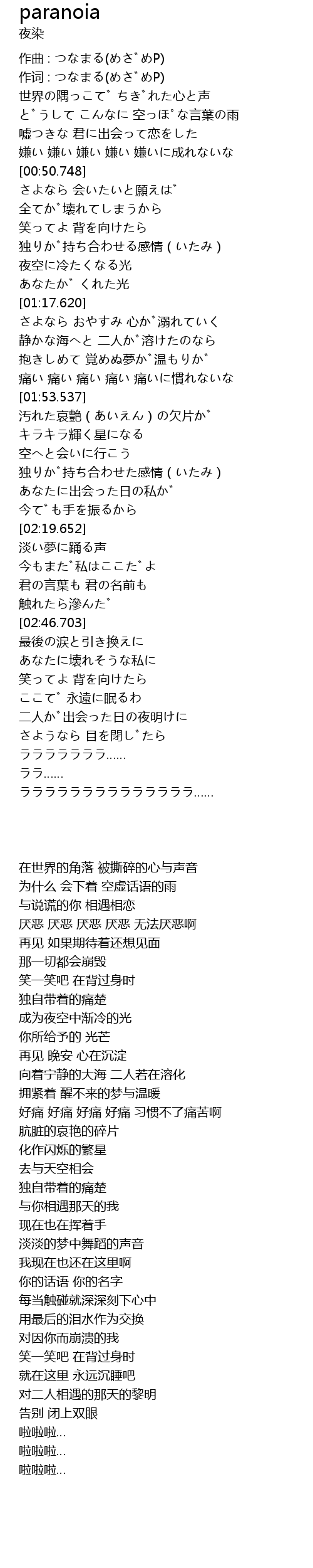 | [00:16.473] | 作词 : つなまる(めざめP) |