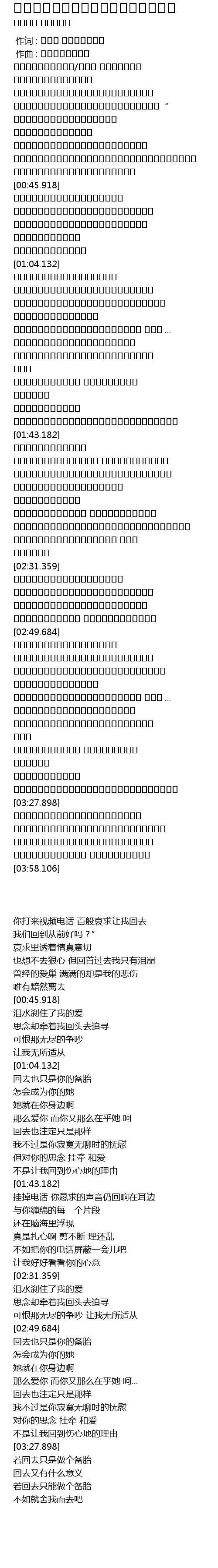 | [02:50.562] | 回去也只是你的备胎 |
