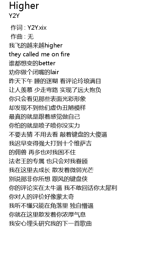 | [00:21.665] | wǒ fēi de yuè lái yuè higher |