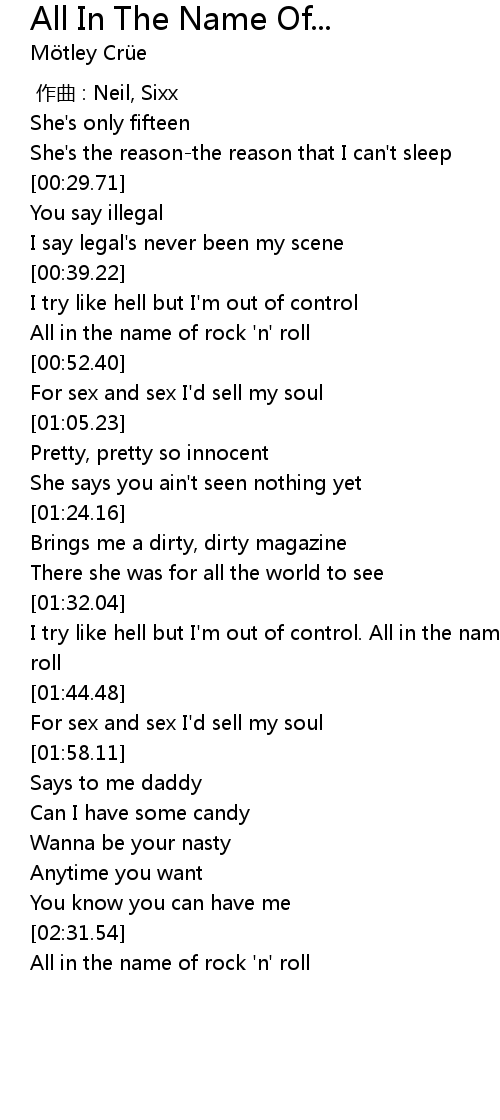 | [01:37.44] | I try like hell but I'm out of control. All in the name of rock 'n' roll |