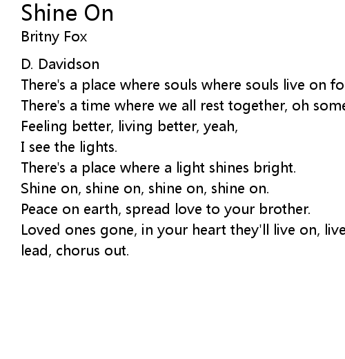 | Loved ones gone, in your heart they'll live on, live on and on. bridge, chorus, lead, chorus out. |