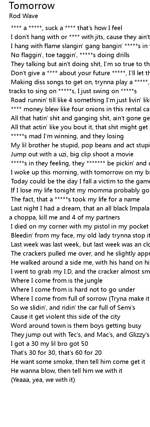 [01:30.990] Where I come from full of sorrow (Tryna make it to tomorrow)