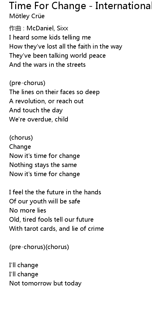 | 歌曲 | Time For Change - International |
