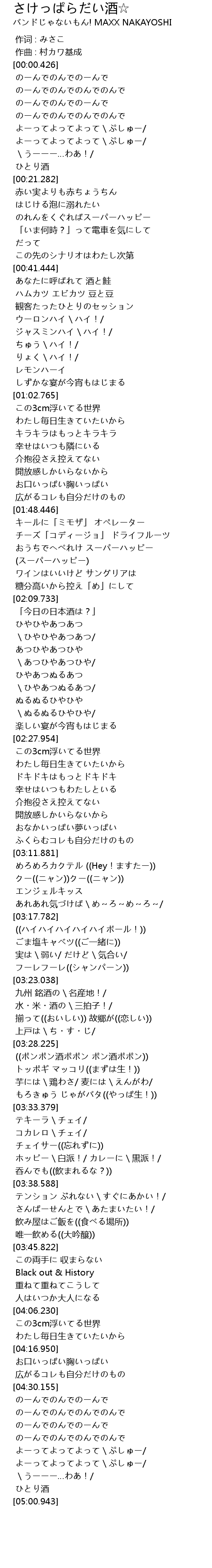 | [03:42.542] | 唯一飲める((大吟醸)) |