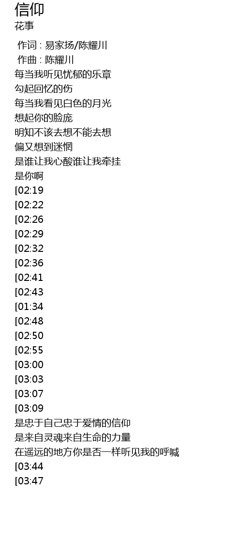 | [03:38][03:44] | 爱是一种信仰 |