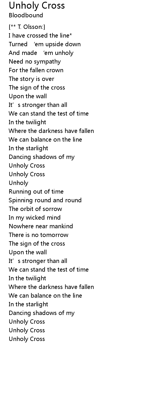 | 歌曲 | Unholy Cross |