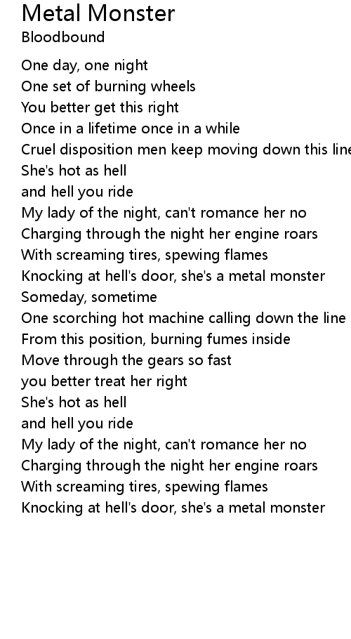 Knocking at hell's door, she's a metal monster |