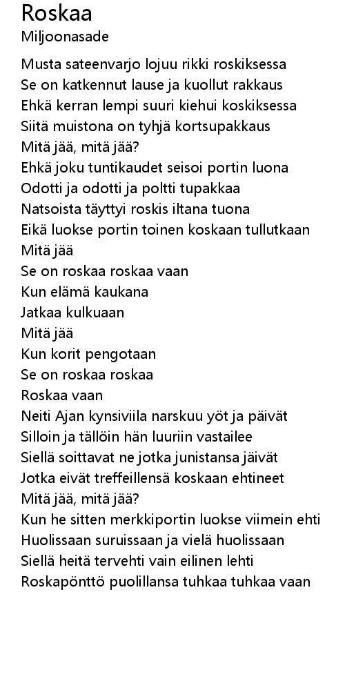 | Se on roskaa roskaa vaan | |