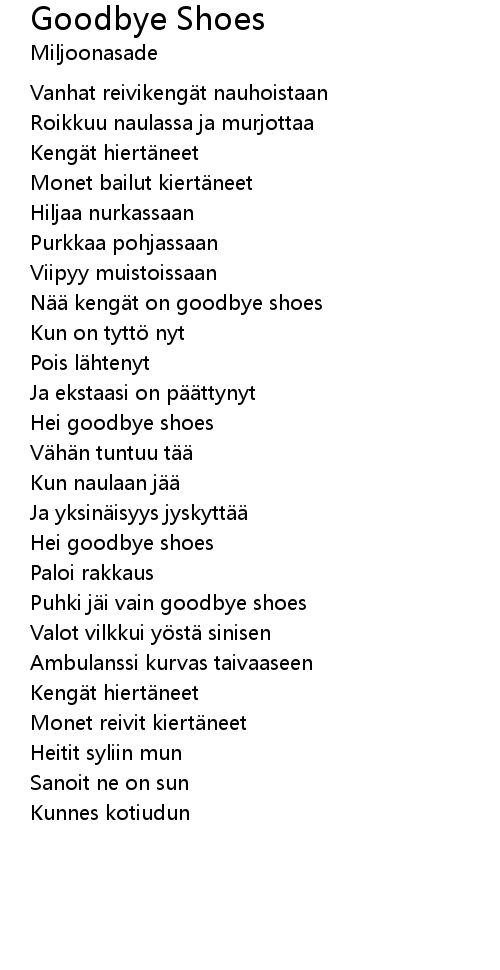 | Nää kengät on goodbye shoes | |