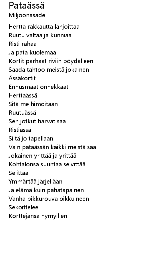 | Vain pata ss n kaikki meist saa | |