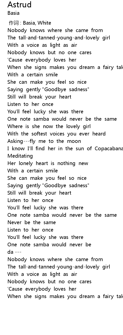 | [00:24.732] | The tall-and-tanned-young-and-lovely girl |