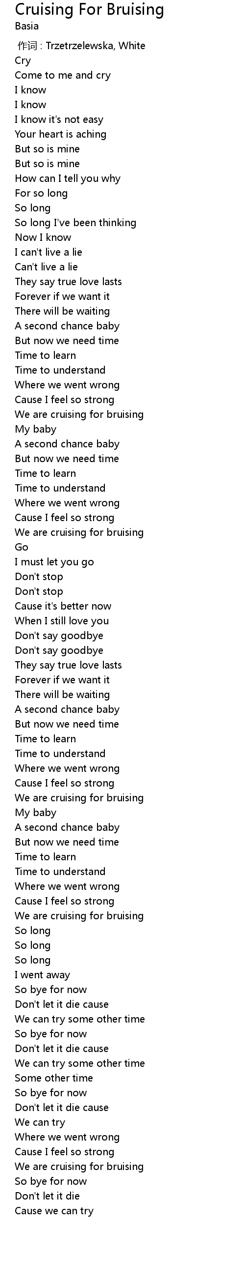 | [03:48.38] | We are cruising for bruising |