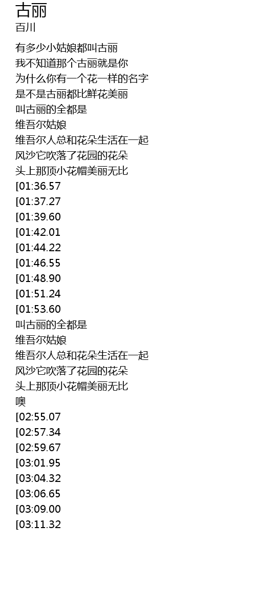 | [03:38.53][01:42.01] | 古丽古丽 |