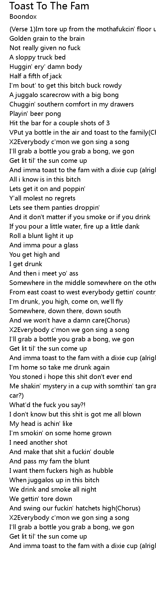 And imma toast to the fam with a dixie cup (alright)(Verse 2) |