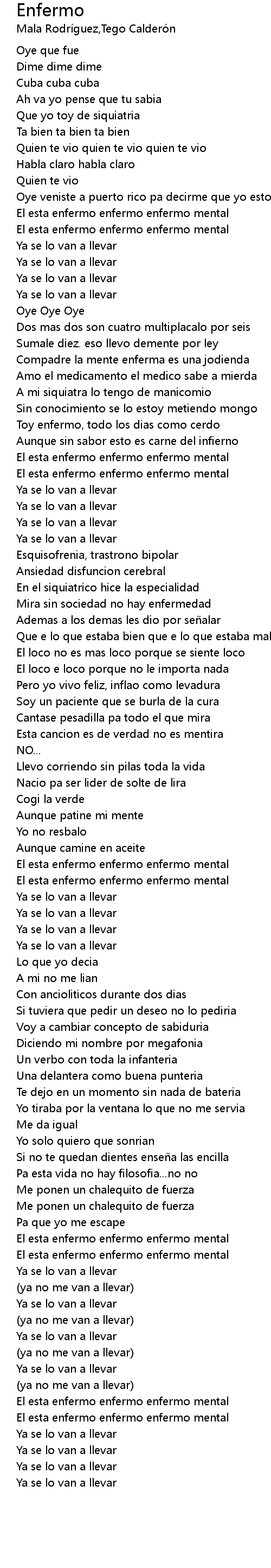 | Que yo toy de siquiatria | |