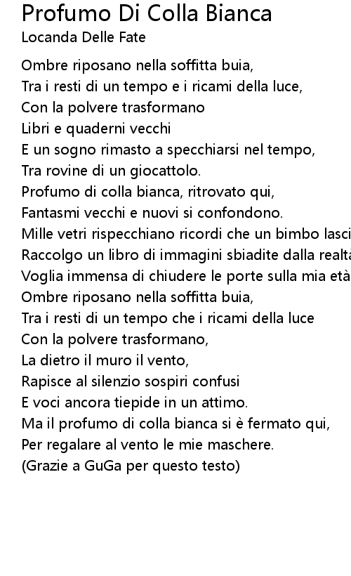 | 歌曲 | Profumo Di Colla Bianca |
