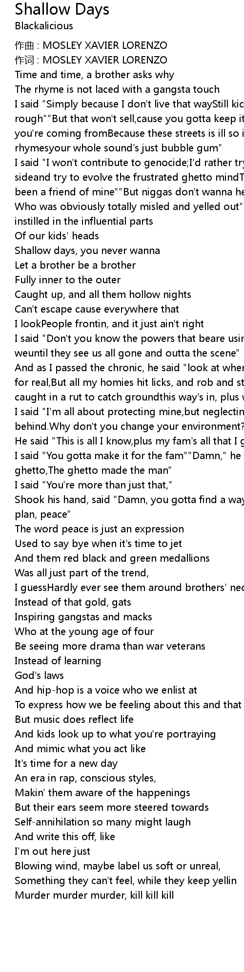 | 作词 : MOSLEY XAVIER LORENZO | |