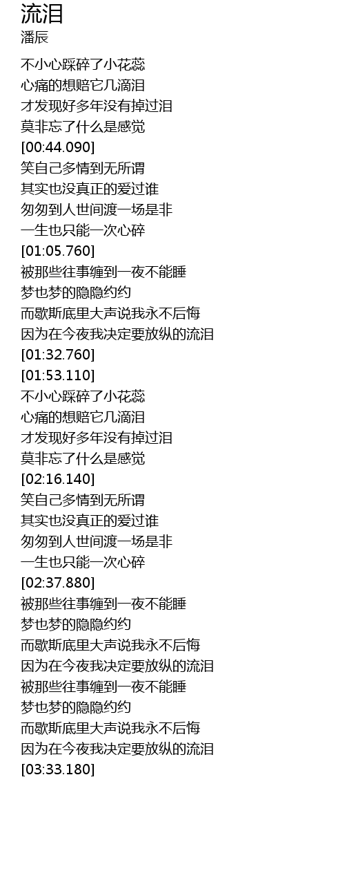 | [00:29.100] | 心痛的想赔它几滴泪 |