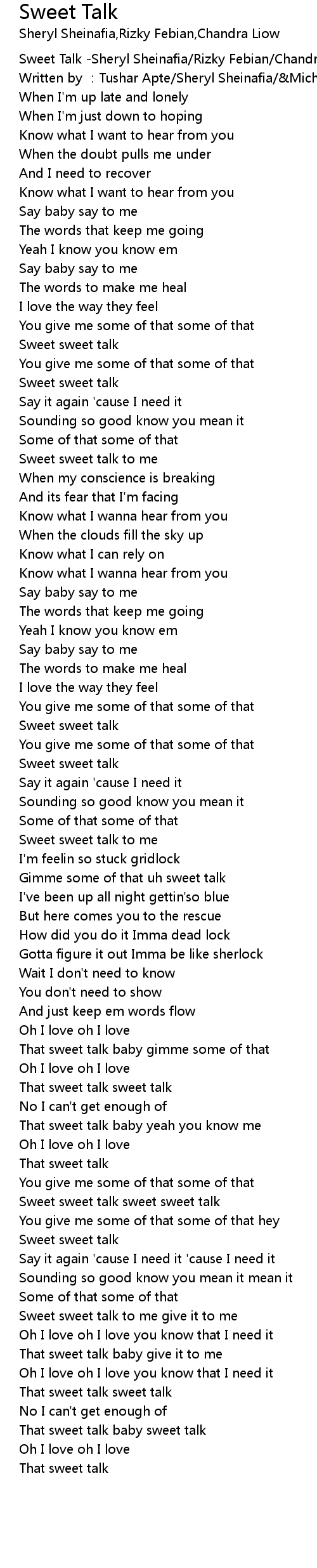 | [02:26.380] | Sweet sweet talk sweet sweet talk |