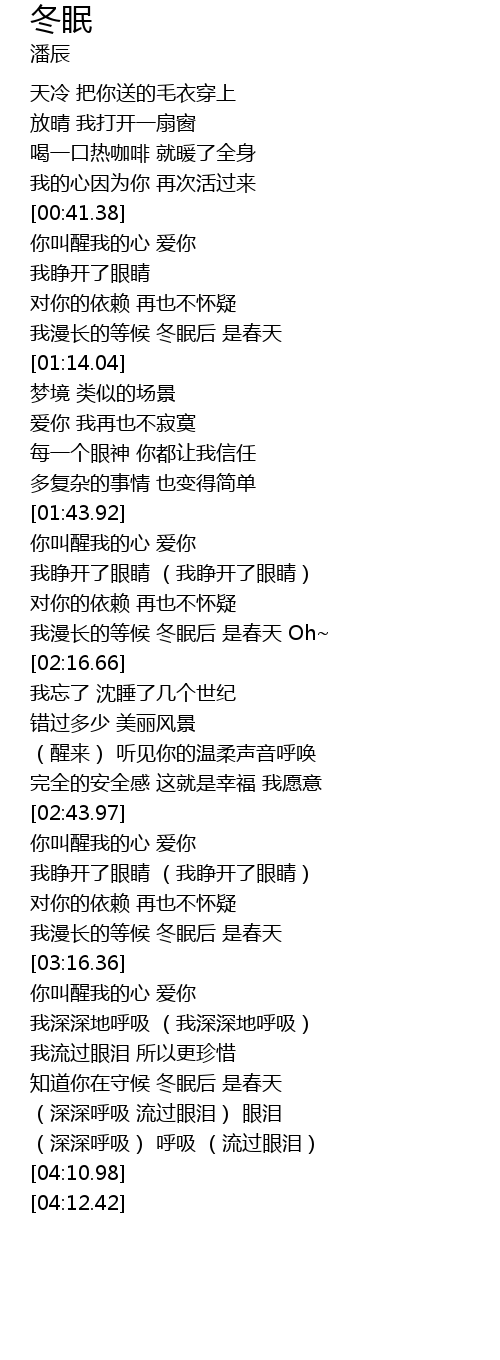 | [02:04.70] | 我漫长的等候 冬眠后 是春天 Oh~ |