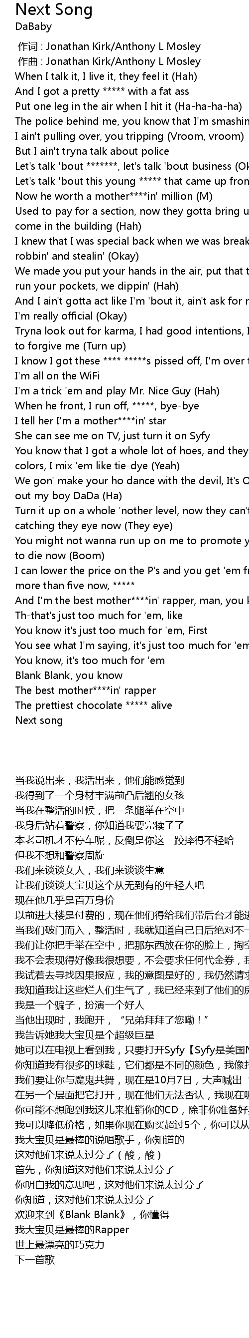 | [00:10.566] | Let's talk 'bout *******, let's talk 'bout business (Okay) |