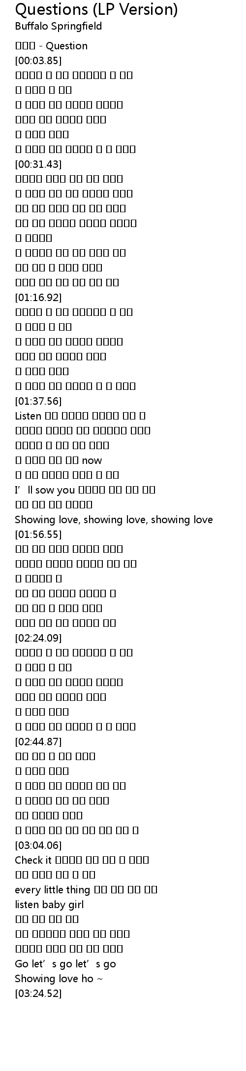 | [01:54.14] | Showing love, showing love, showing love |