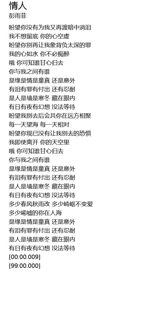 | [00:44.32] | 盼望你别再让我象背负太深的罪 |