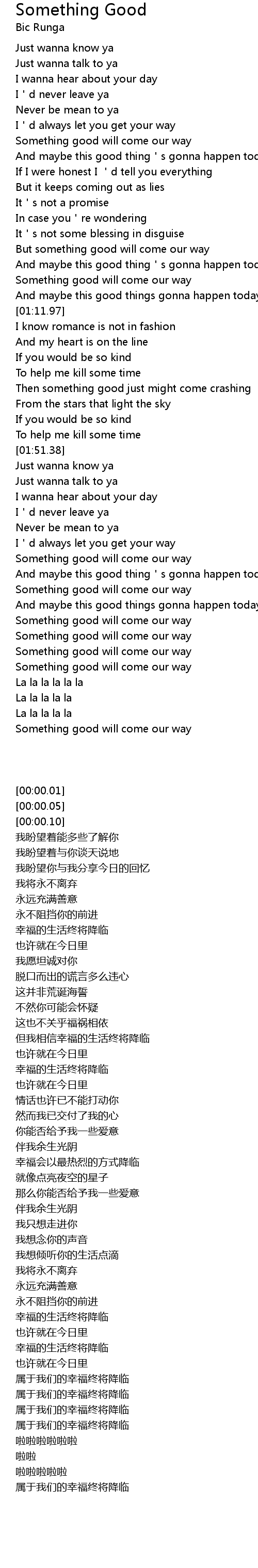 | [00:55.43] | And maybe this good thing's gonna happen today |
