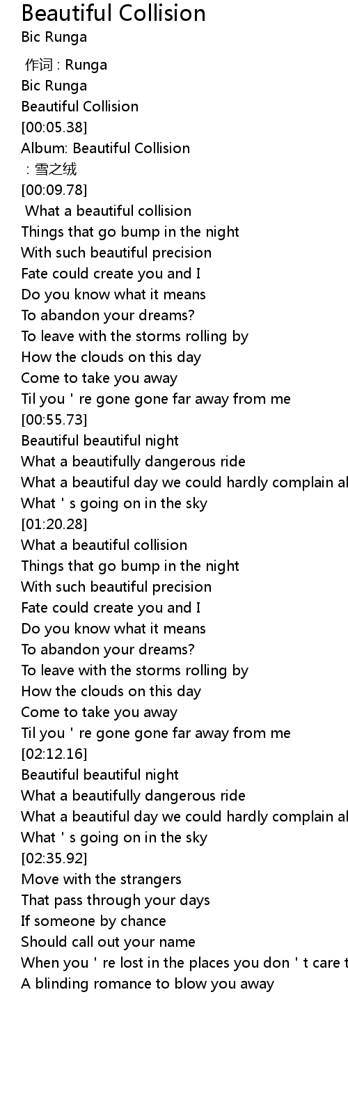| [01:20.42] | What a beautiful collision |