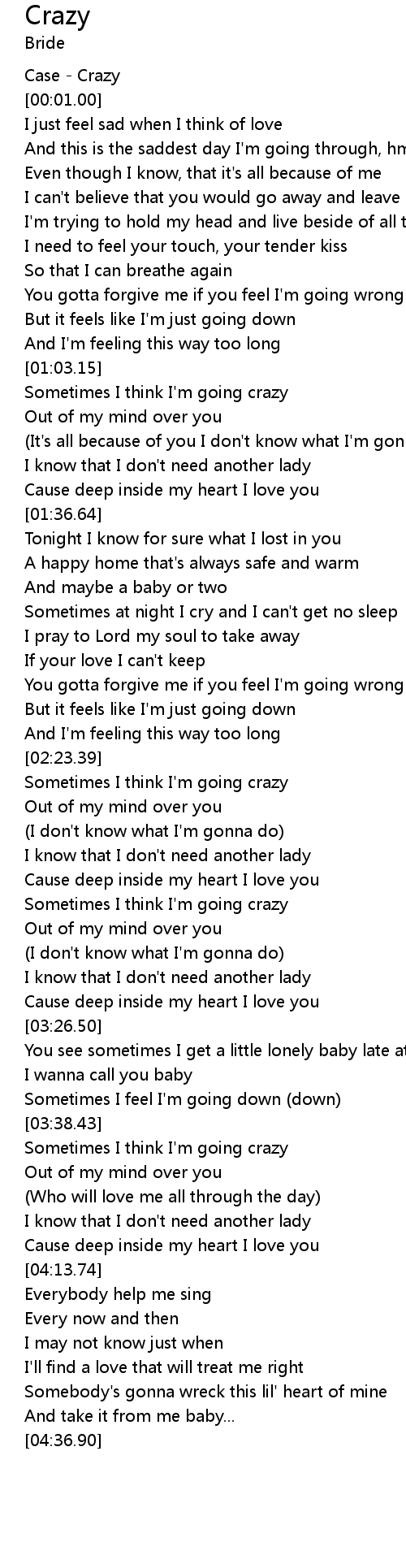 Sometimes I think I'm going crazy |