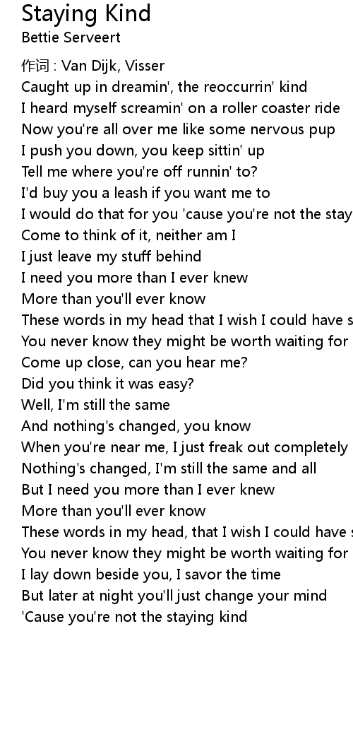 | 歌曲 | Staying Kind |