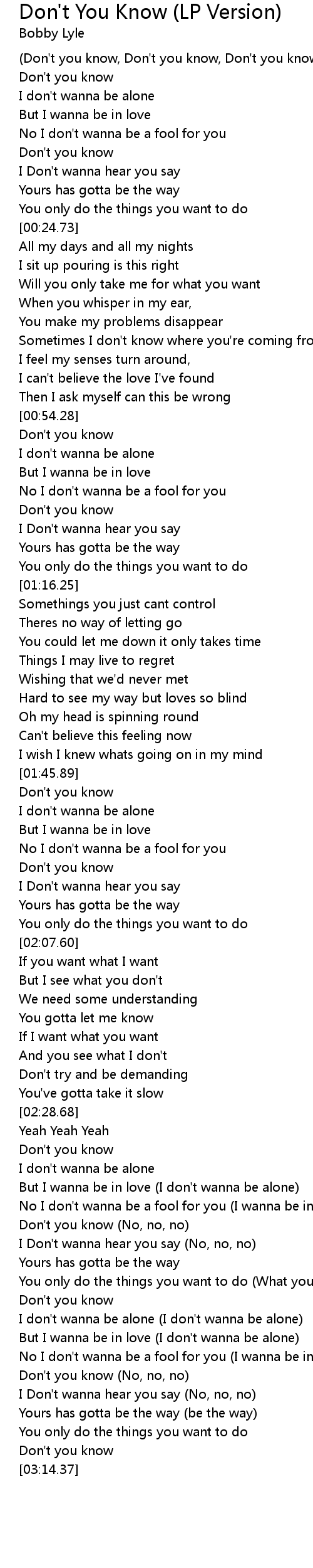 No I don't wanna be a fool for you (I wanna be in Love) |