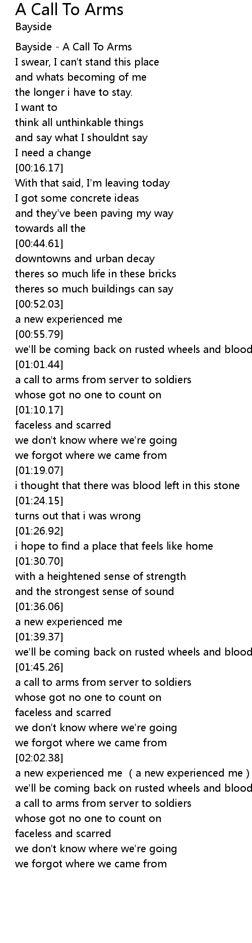 | [02:34.31] | we' ll be coming back on rusted wheels and bloody knees |