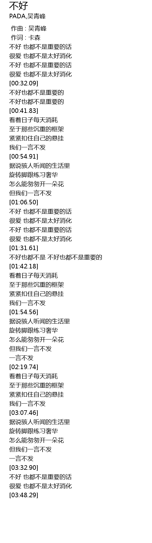 | [01:36.21] | bù hǎo yě dōu bú shì bù hǎo yě dōu bú shì zhòng yào de |