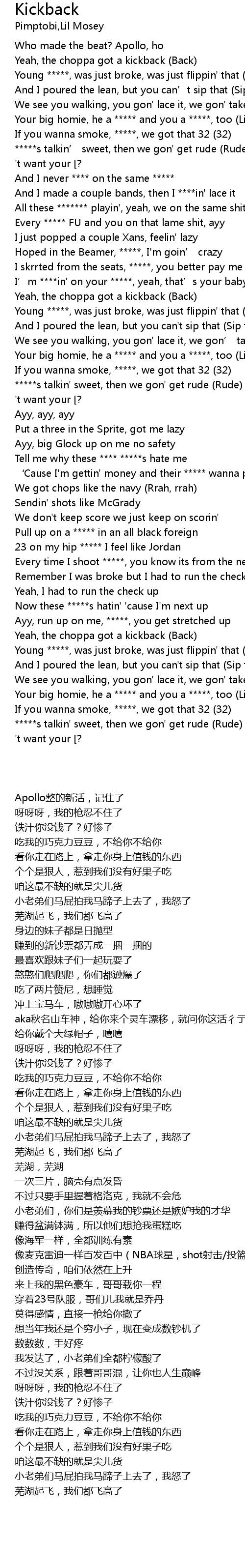 | [00:19.76] | Yeah, the choppa got a kickback Back |