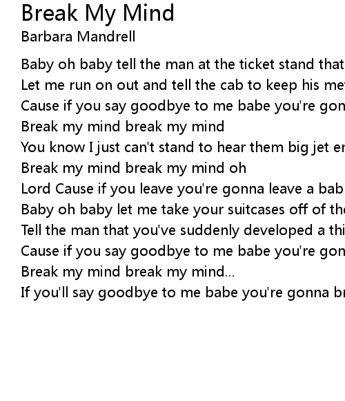 If you'll say goodbye to me babe you're gonna break my mind break my mind |