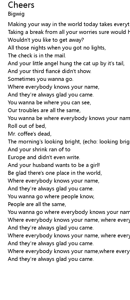 | Where everybody knows your name, where every body knows your name, | |