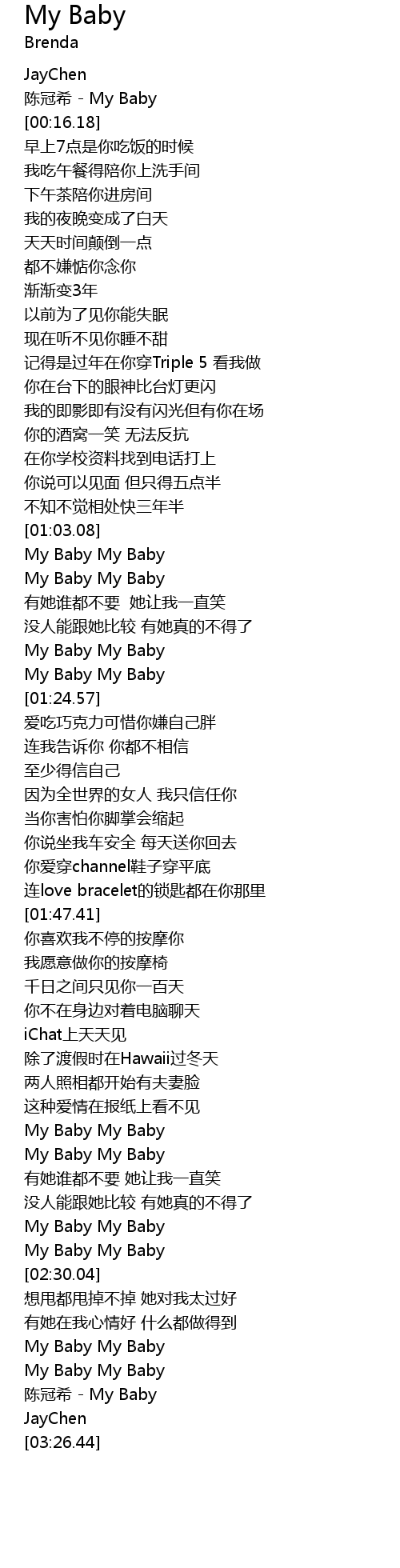 | [02:24.66] | My Baby My Baby |
